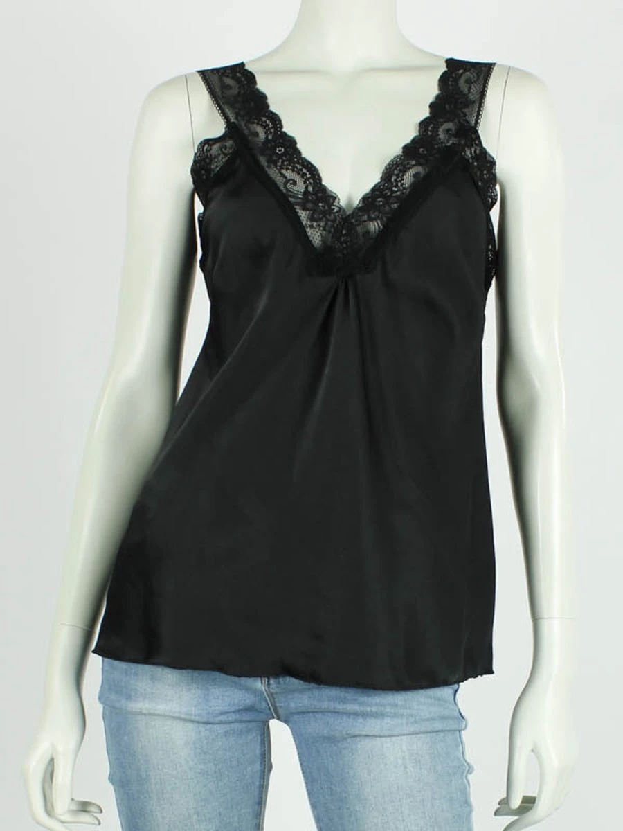 Top met royale rand kant in mooie V- lijn.