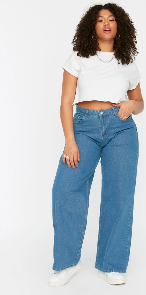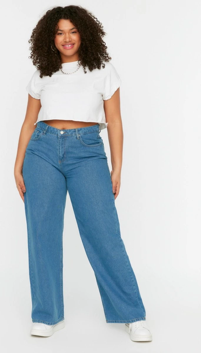 Trendyol Vrouwen Hoge Taille Breed Been Plus Size Jeans